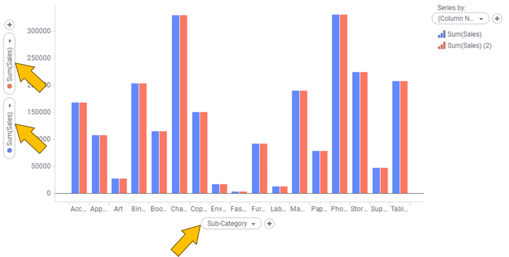 3. “Sales” to Y Axis, twice