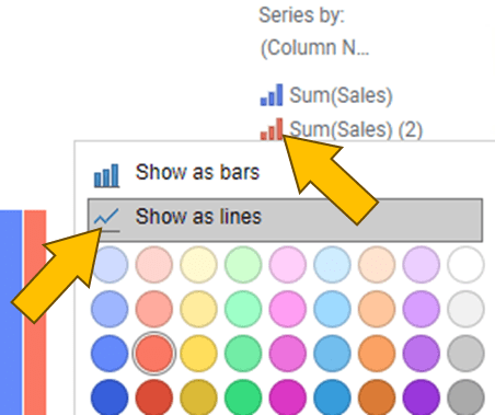 4. Head to legend and click on the small bar chart icon of “Sum(Sales) (2)”