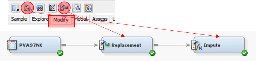 1. From Modify tab, drag Replacement and Impute node
