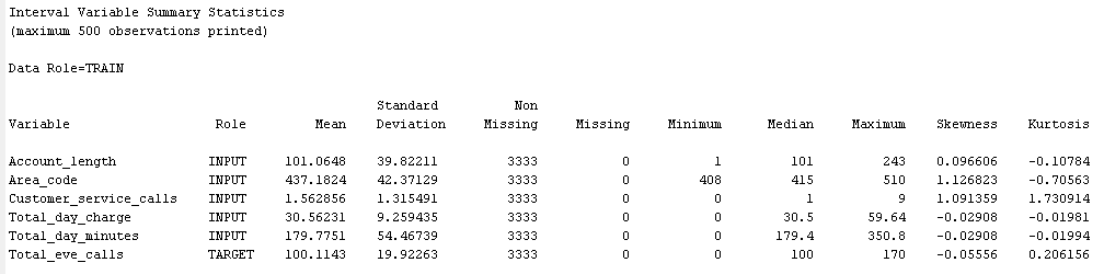 • Numerical statistic consist of mean, std, N-missing frequency, min, median, max, skew and kurtosis.