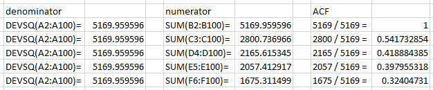 To fully understand how the calculation, kindly refer to Sangwoo.Statistics Kim video about “504 How to calculate ACF by 2 ways in Excel”. It is a very clear and crispy explanation on how ACF were calculated.