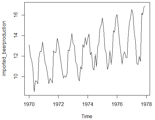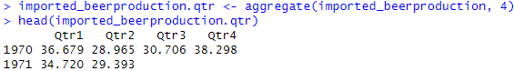 imported_beerproduction.qtr <- aggregate(imported_beerproduction, 4)
