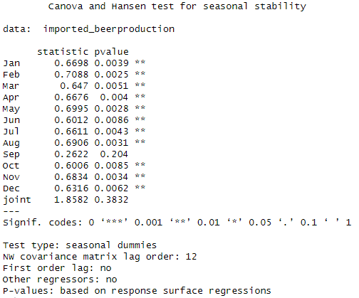 ch.test(imported_beerproduction)![]() | ch.test(diff(imported_beerproduction, 12))![]() |
