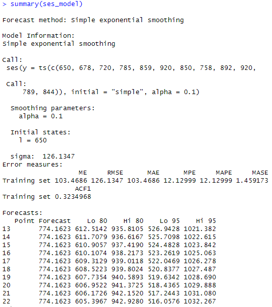 ses_model <- ses(c(650,678,720,785,859,920,850,758,892,920,789,844),