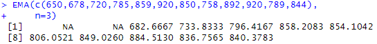 EMA(c(650,678,720,785,859,920,850,758,892,920,789,844),