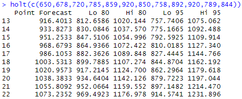 holt(c(650,678,720,785,859,920,850,758,892,920,789,844))