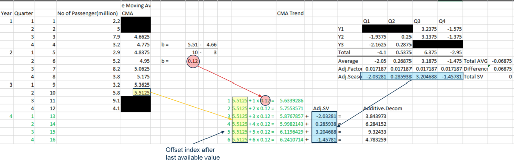 Step 7. Calculate subsequence value of CMA using slope and indexes. Add it with seasonal table data.