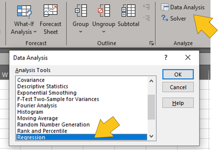 6. Open Regression dialog.