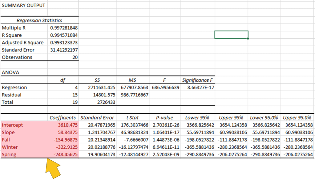 8. Excel produce regression result, but we only interested to highlighted red.