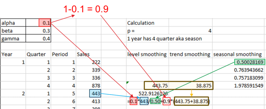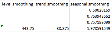 - gamma = seasonality smoothing constant