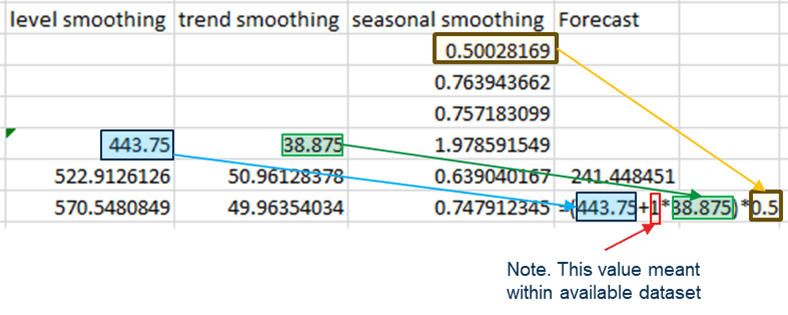 4. Calculate initial year seasonal smoothing.