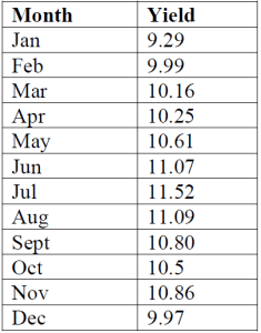 The yield on a general obligation bond for the city of Davenport fluctuates with the market. The monthly quotations for 1999 are as follows: