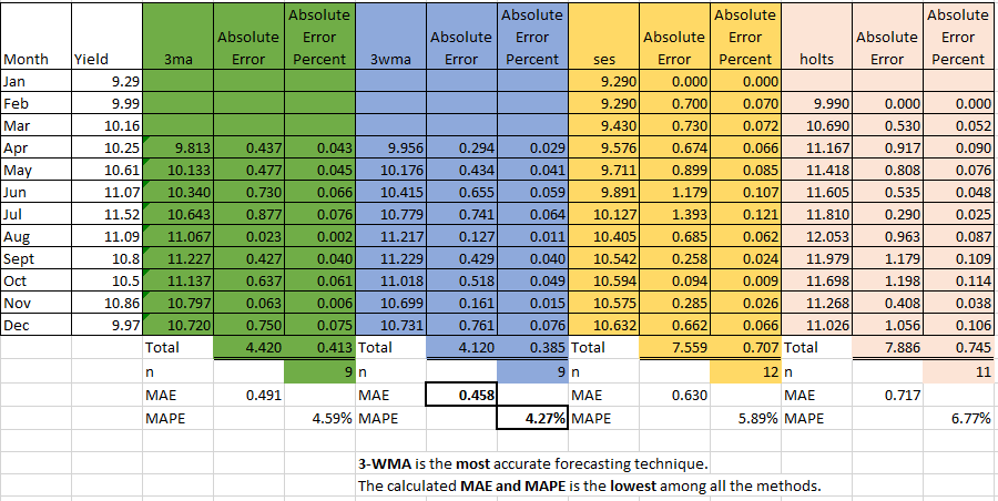 (ii) weighted moving average (0.50, 0.33, and 0.17 for the most recent, next recent, and most distant data respectively).