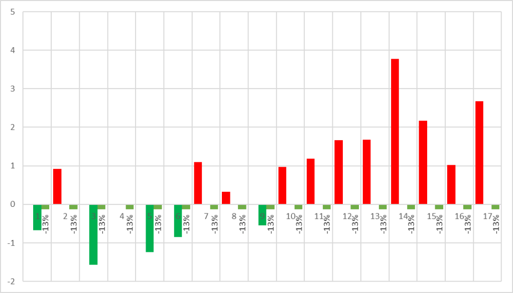 ps. Value percentage different between data point; affect by positive/negative cancel each other.