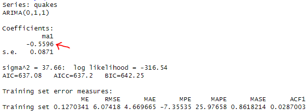 quakes_train_arima_011 <- Arima(train_quakes, order=c(0,1,1))