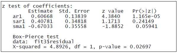 The table below shows the result after fitting a time series data by an ARIMA model.