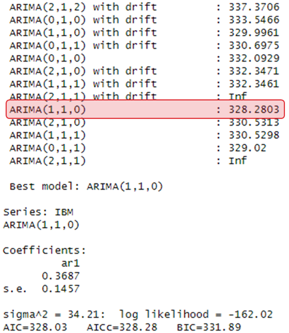 (c) Fit an ARIMA model to the IBM series. Interpret the results.