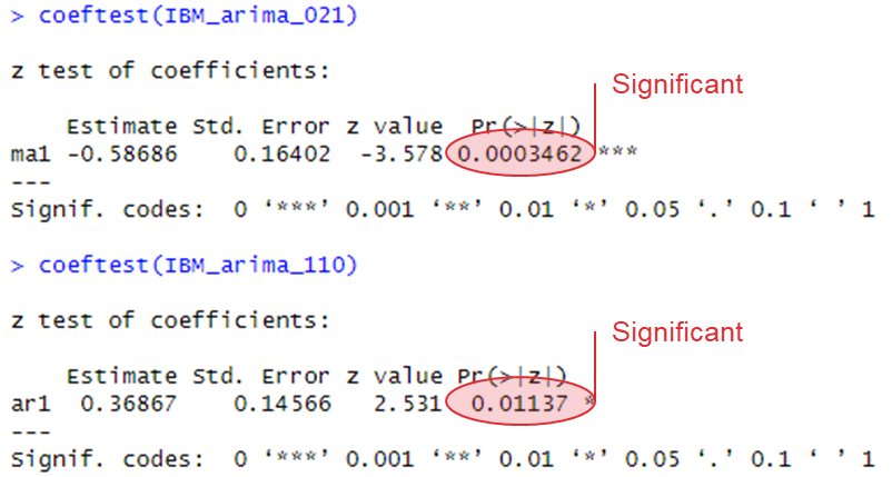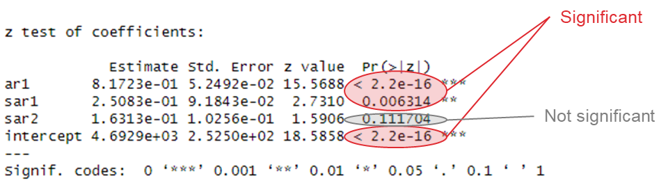 (d) Are all the AR coefficients in the ARIMA model significant at α = 0.05?