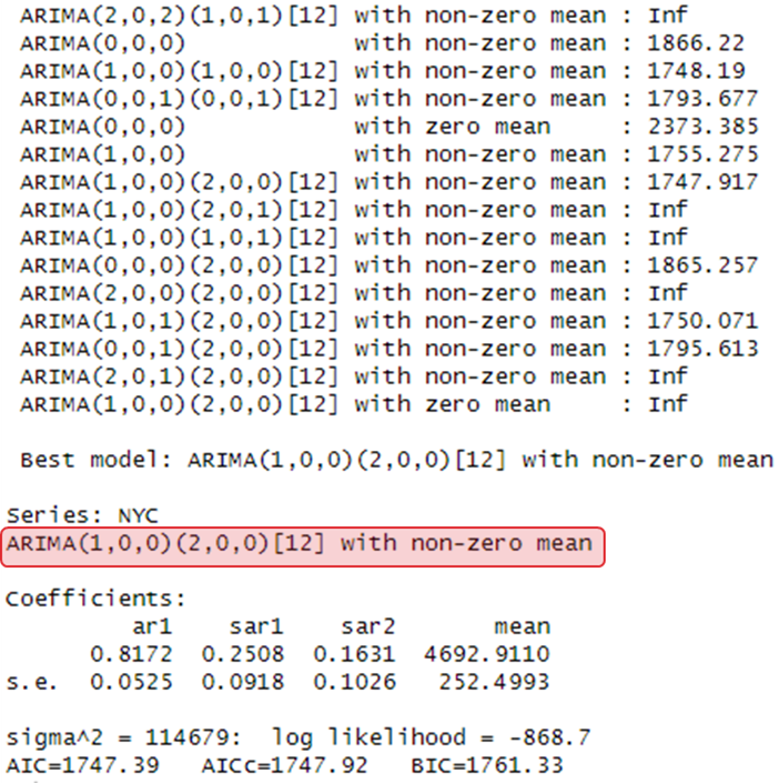 #Ultilized auto.arima for ARIMA hyperparameter suggestion