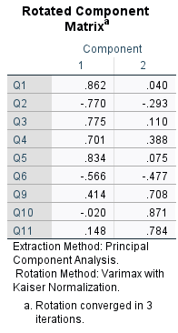 Exclude Q6 as it is cross loading, show almost similar magnitude in factor 1 and factor 2.