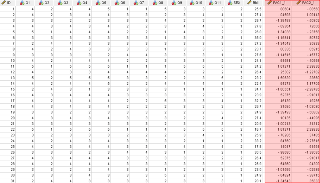 Data reduction aka factor score