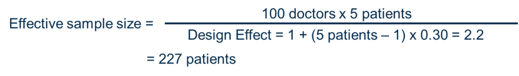 Conclusion, two stage sample of 500 patients is equivalent to simple random sample of 227 patients.