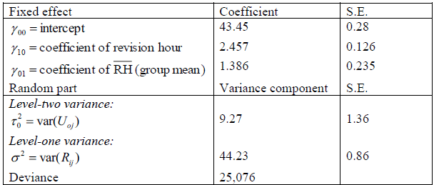 has been centered, so that its mean is 0. The standard deviation for revision hours and economics score are 1.67 and 8.89 respectively. The results are presented below.